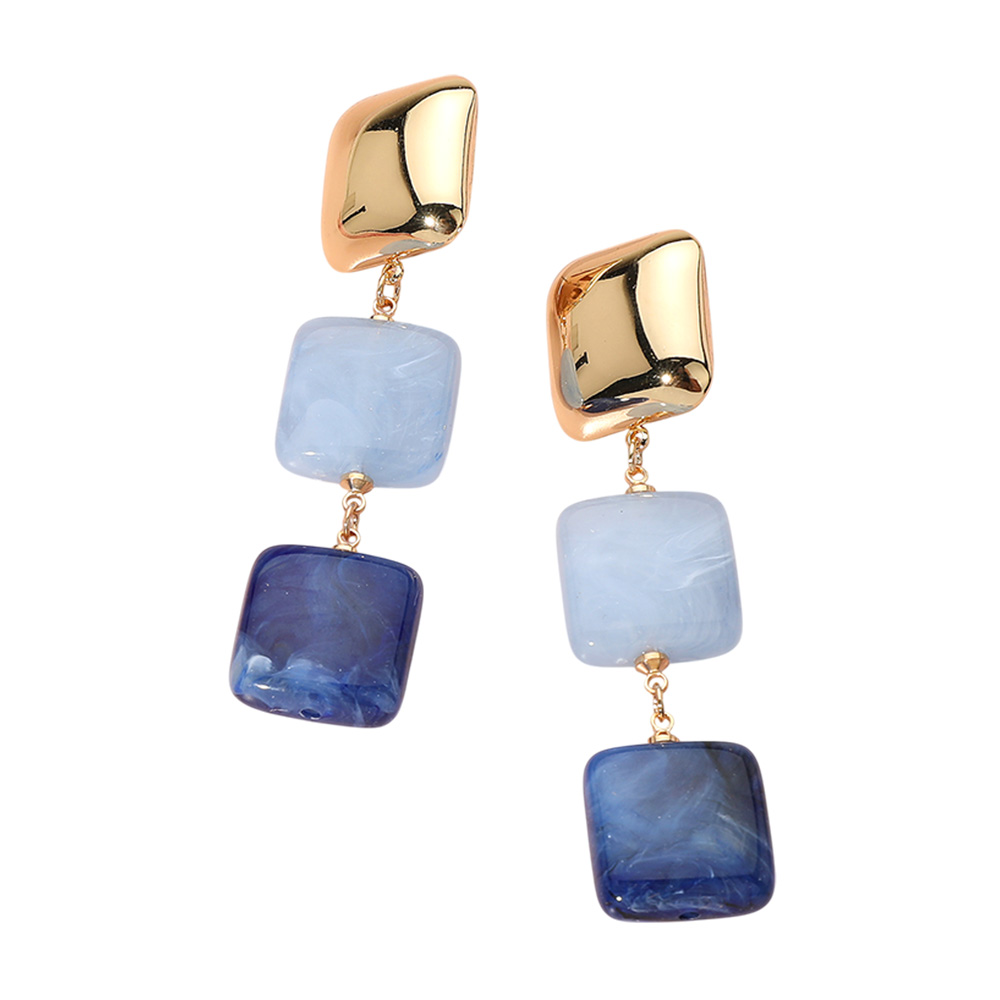 Celluloid Acetate Square Pebble Link Drop Earrings