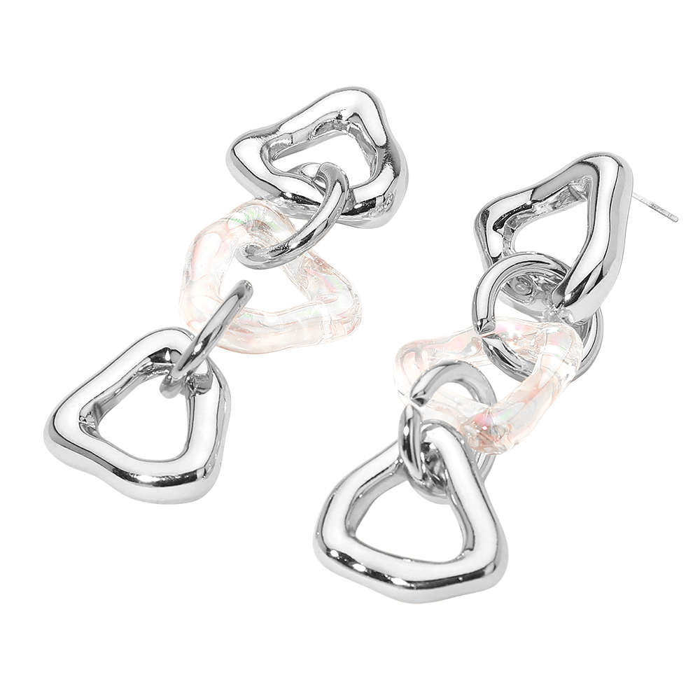 • Bold abstract link drop earrings designed with a modern sculptural silhouette and fluid movement. This statement style adds artistic edge and visual interest to everyday looks, party outfits, and trend-driven collections, making it a standout accessory for fashion-forward displays.