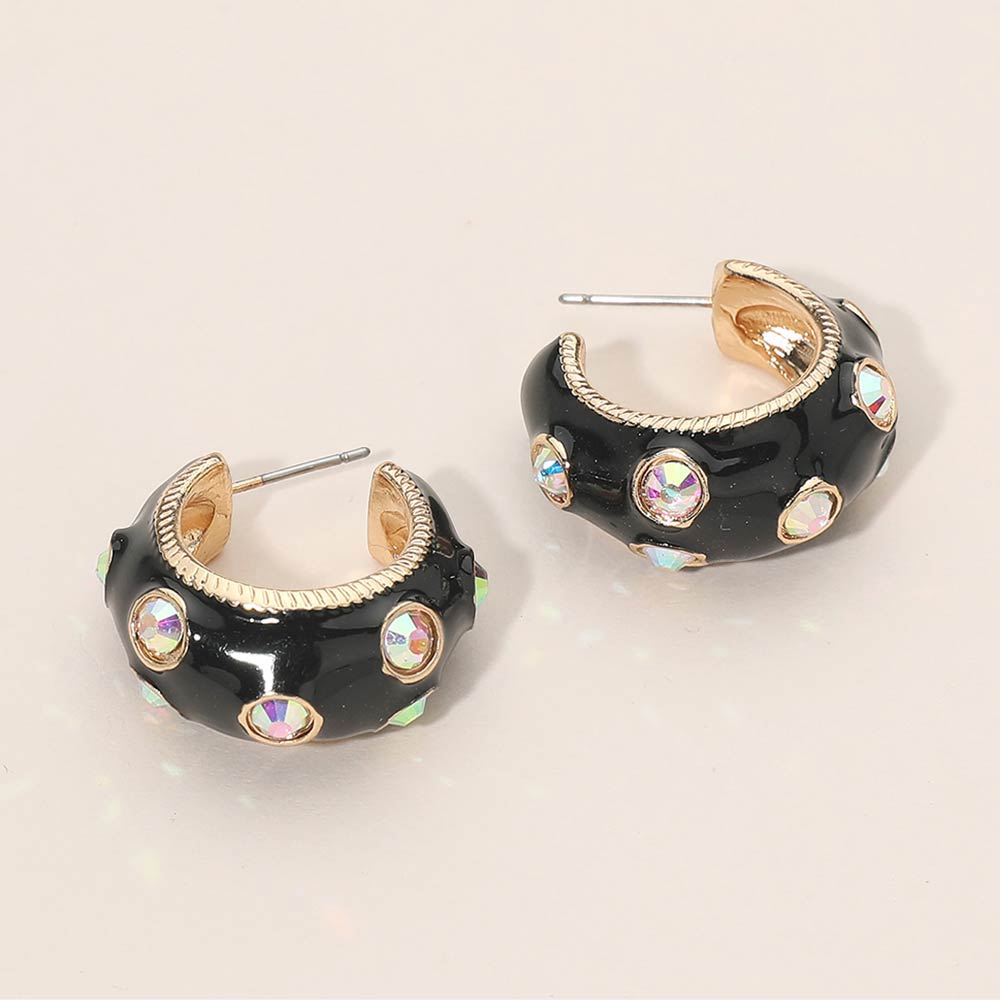 • Bold huggie hoop earrings designed with raised detailing and sparkling accent elements for a standout statement look. The compact hoop shape offers comfortable wear while adding eye catching texture and shine. Ideal for boutique collections, trend driven styling, gifting, and special occasions. A modern accessory that elevates everyday outfits with confident, fashion forward appeal.