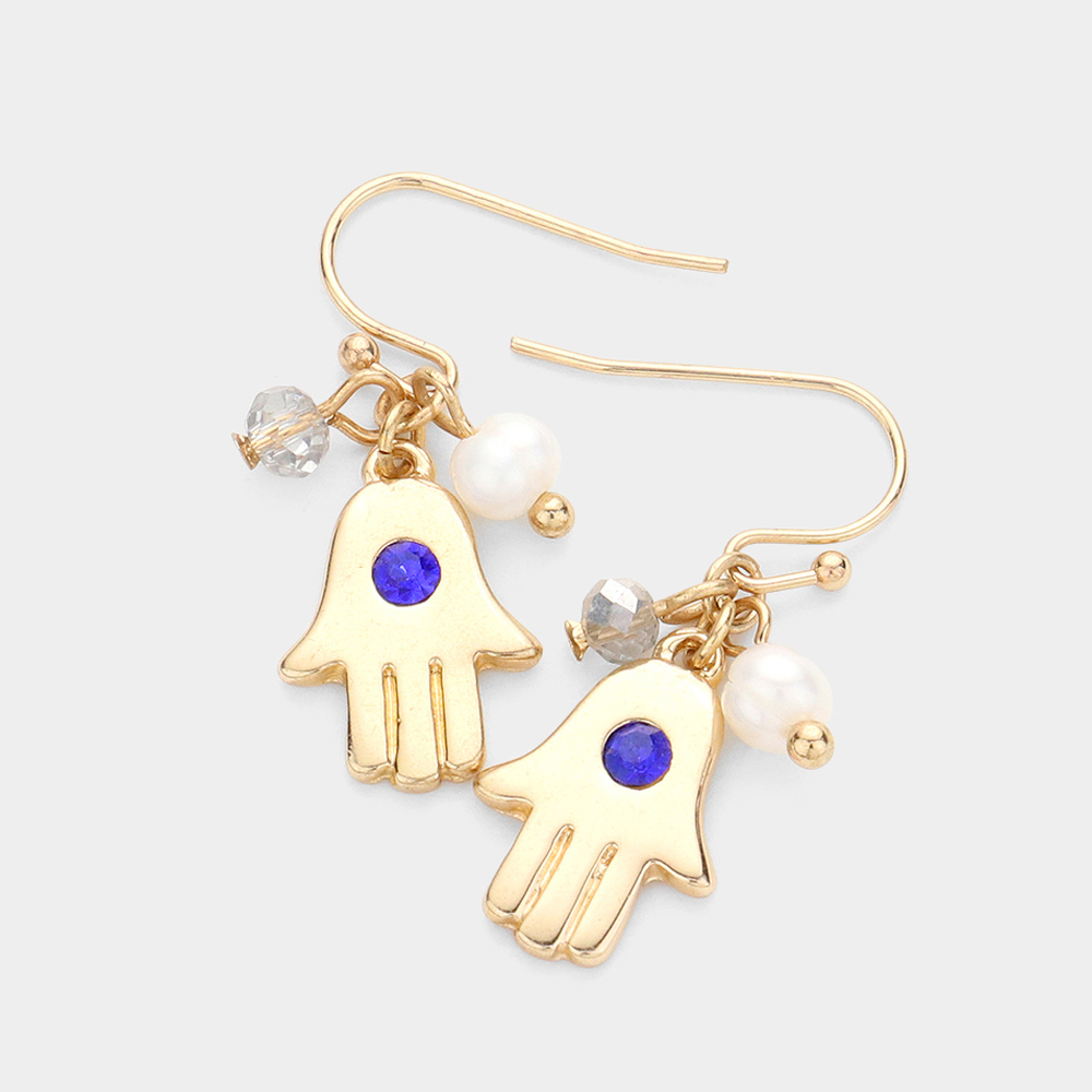 Evil Eye Hamsa Hand Printed Teardrop Dangle Earrings