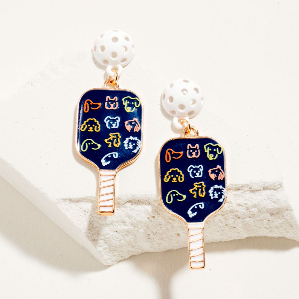 Dog Face Pattern Pickleball Paddle Dangle Earrings