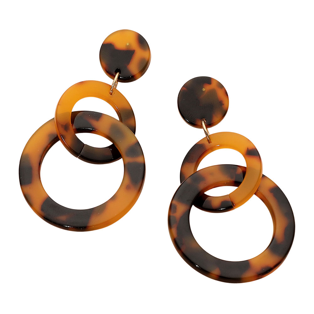 Details • Size : 1.25" X 2.25" • Post Back • Sculptural double-drop earrings with interlocking rings that create bold movement and modern style. Designed as a lightweight statement piece, they elevate everyday outfits and add dynamic flair for evenings, events, or standout seasonal looks. • Lead and Nickel Compliant