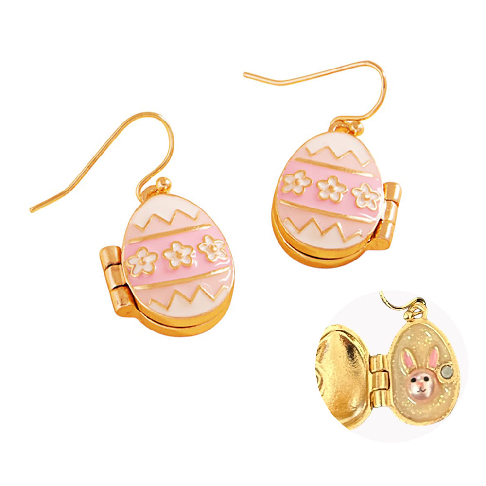 Details • Size : 0.7" X 1" • Brass Fish Hook Back • Easter egg locket drop earrings featuring a playful hinged design with charming seasonal details. This whimsical style opens to reveal a fun surprise, making it a standout accessory for spring collections. Ideal for boutiques, gift shops, and holiday-themed assortments looking to add novelty earrings with eye-catching movement, cheerful character appeal, and strong gifting potential. • Lead and Nickel Compliant