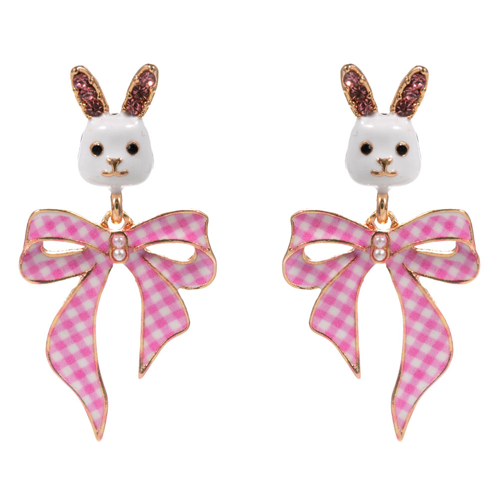 Easter Bunny Gingham Bow Drop Dangle Earrings Easter Bunny Gingham Bow Drop Dangle Earrings