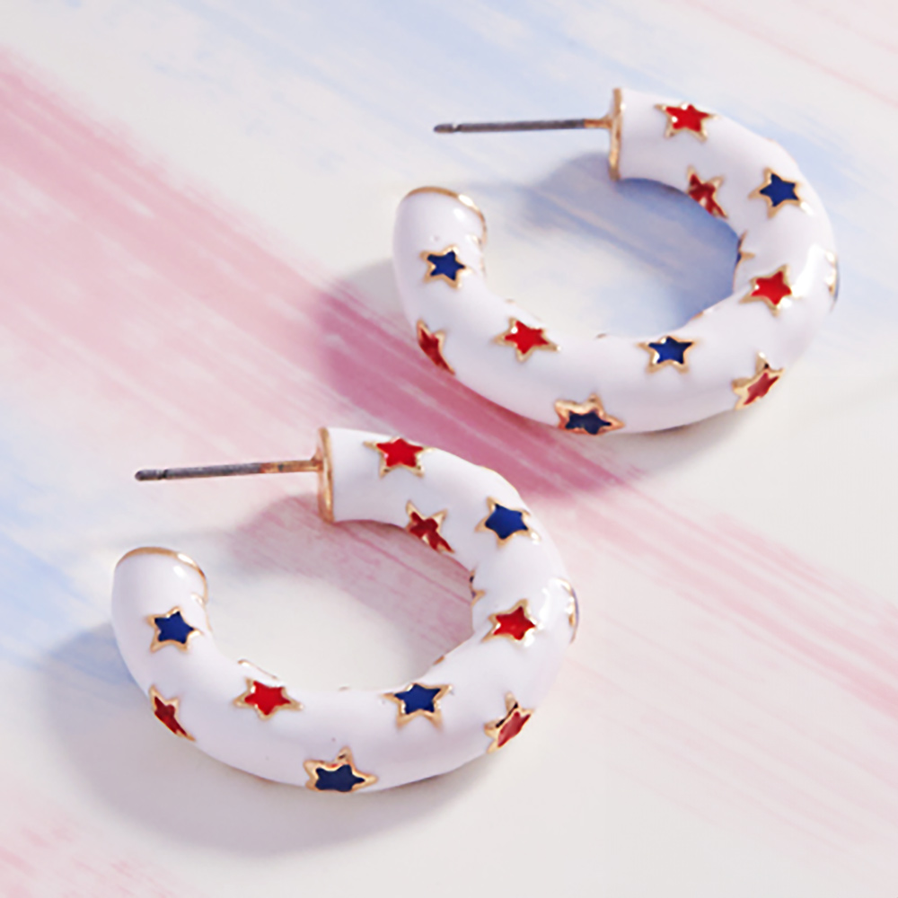 Resin American USA Flag Firework Teardrop Stone Cluster Dangle Earrings
