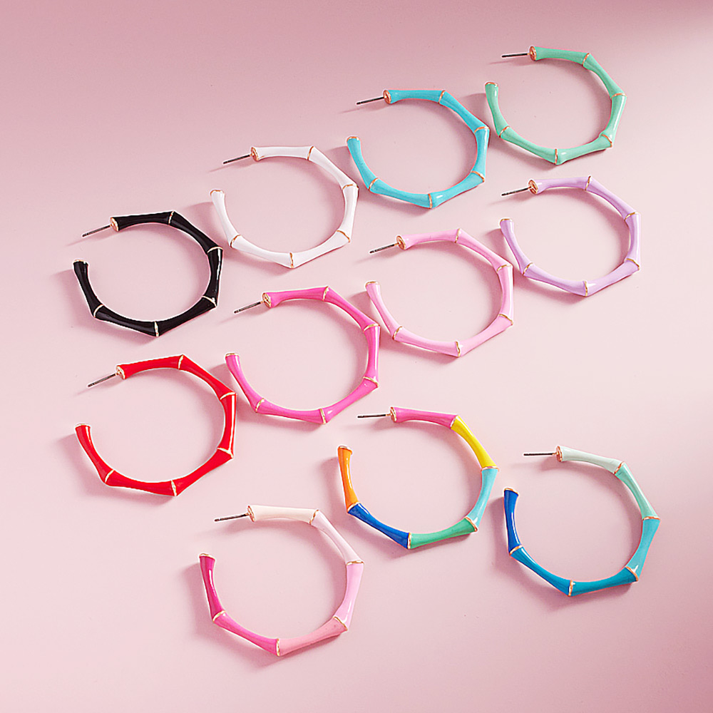 Oversized Metal Bamboo Pin Catch Hoop Earrings