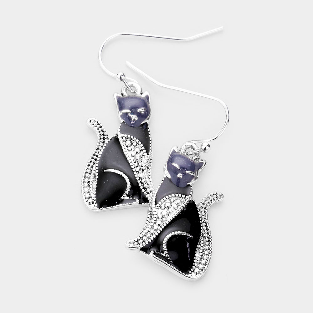 Enamel Cat Dangle Earrings