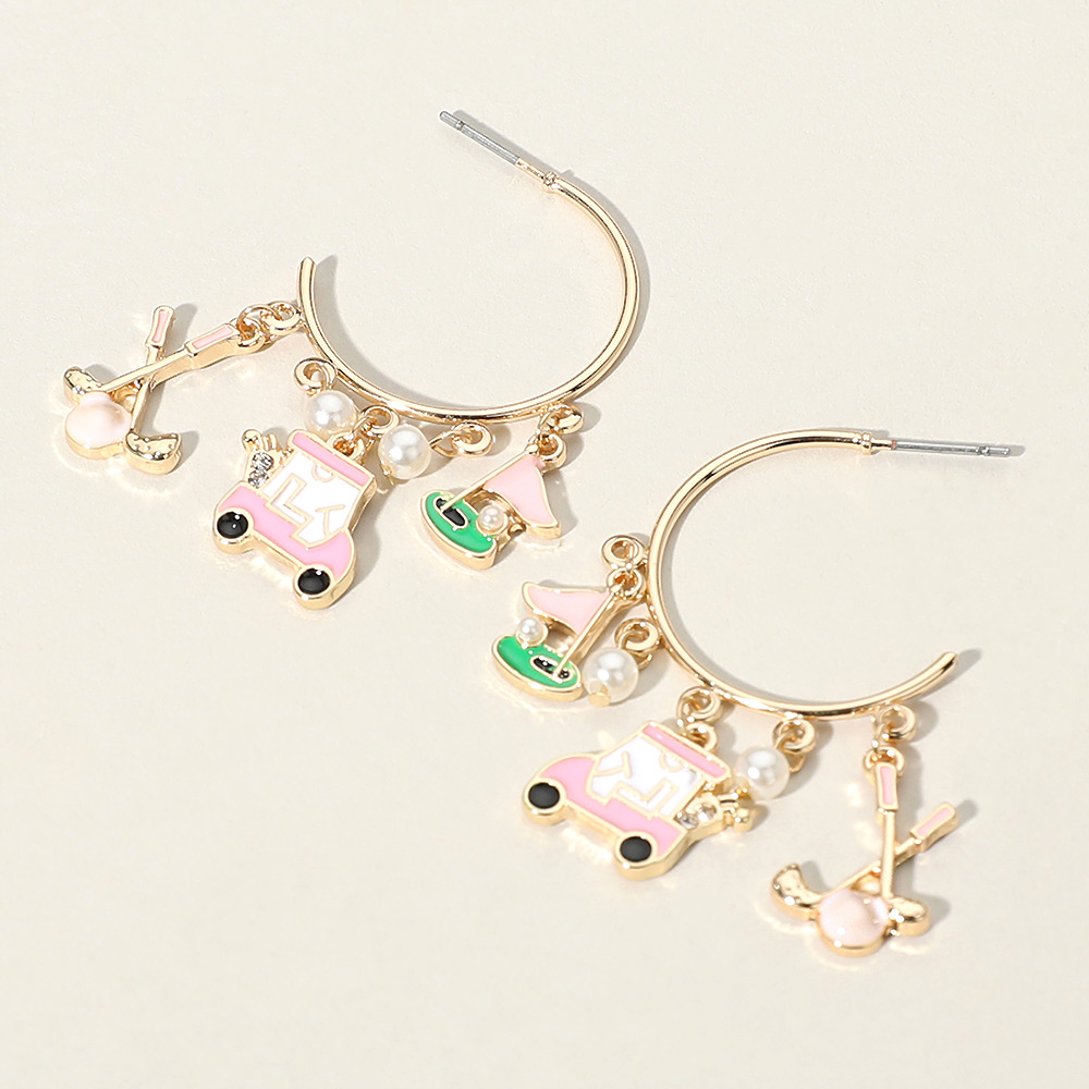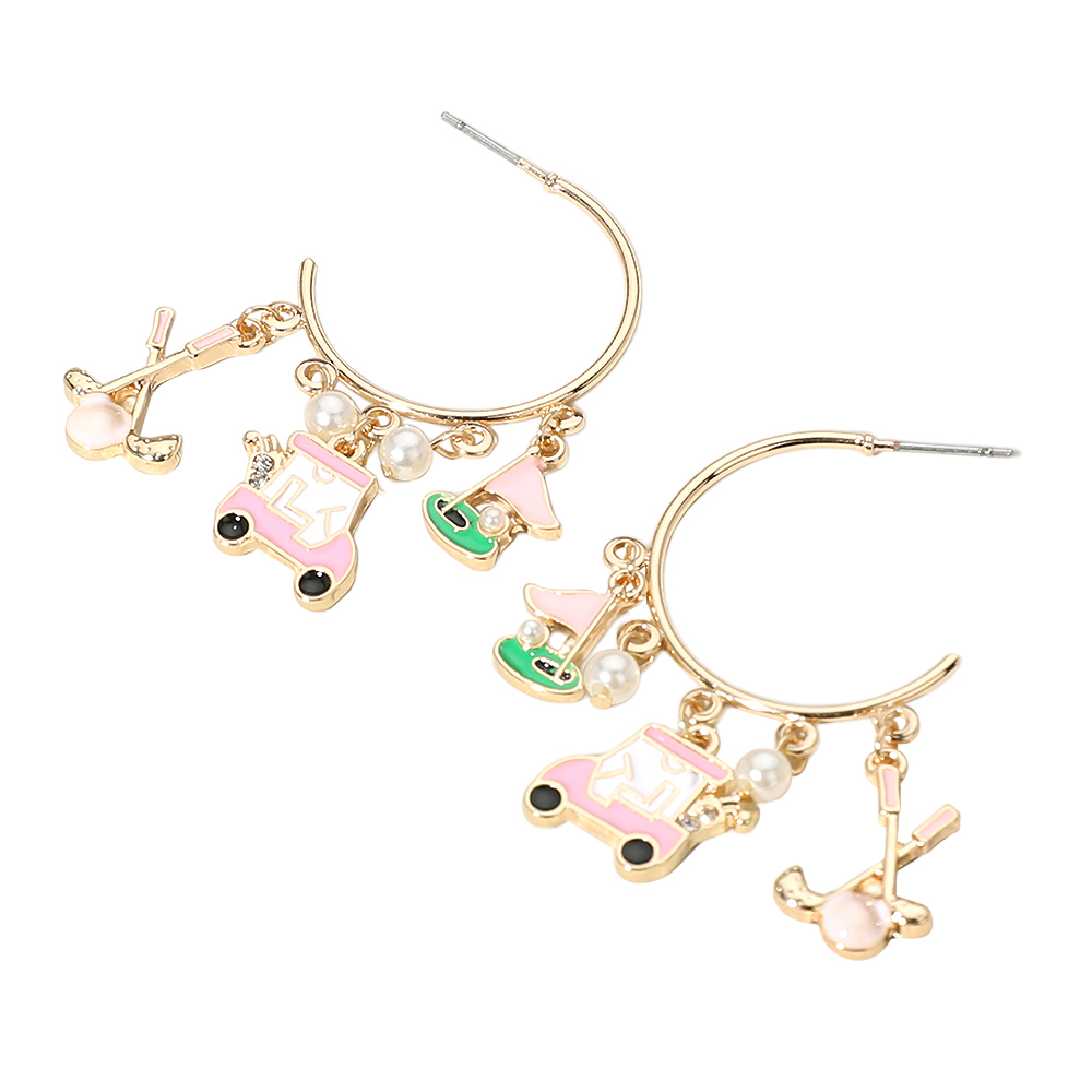 Enamel Golf Pearl Charm Dangle Hoop Earrings