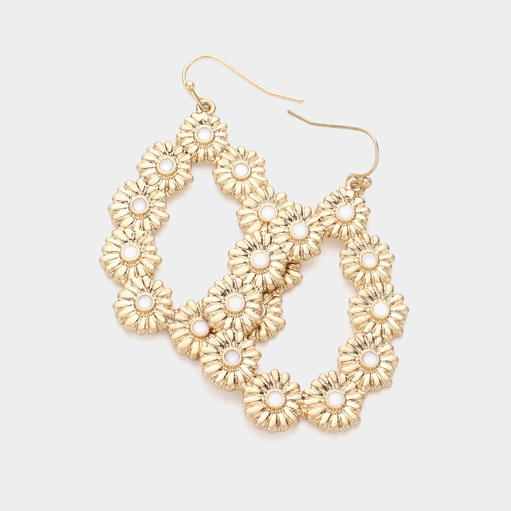 Enamel Point Metal Flower Open Teardrop Dangle Earrings
