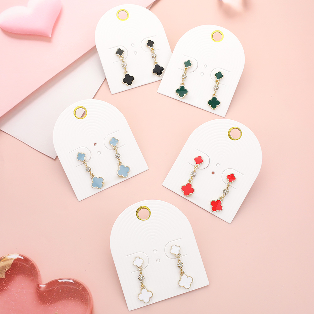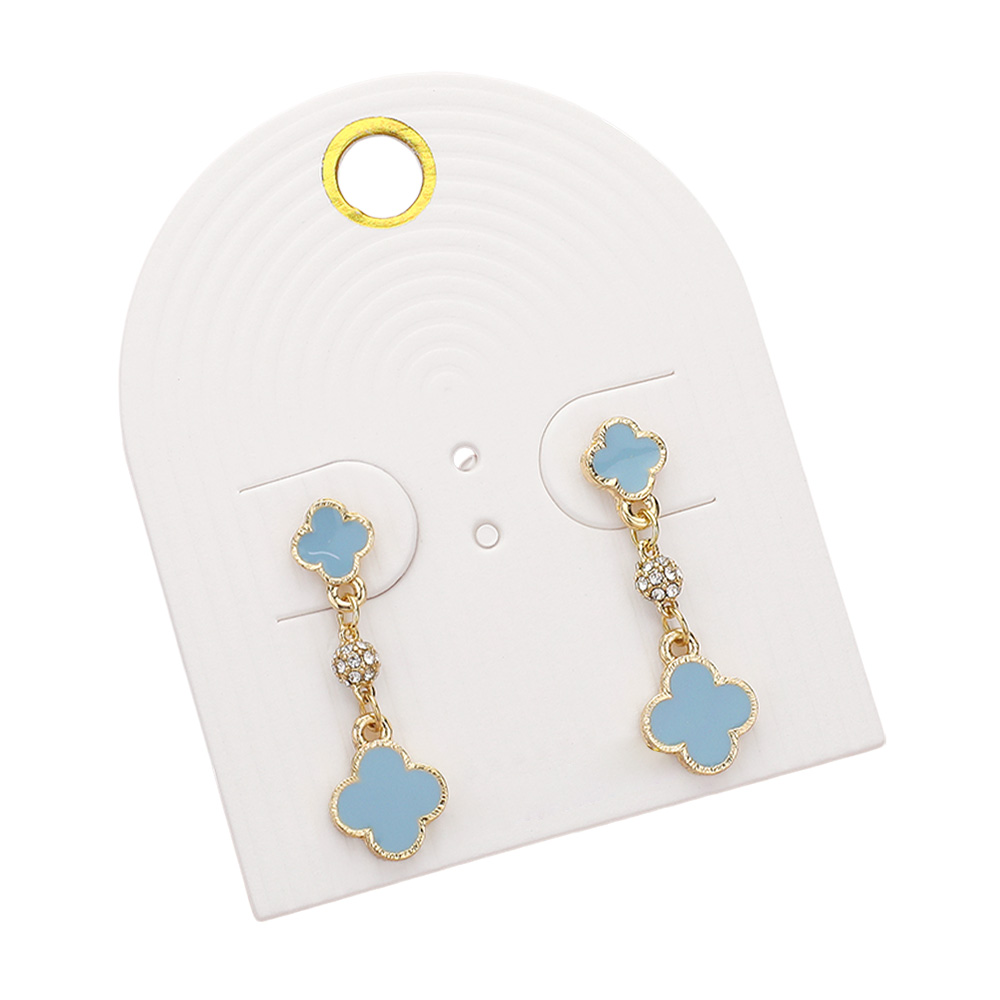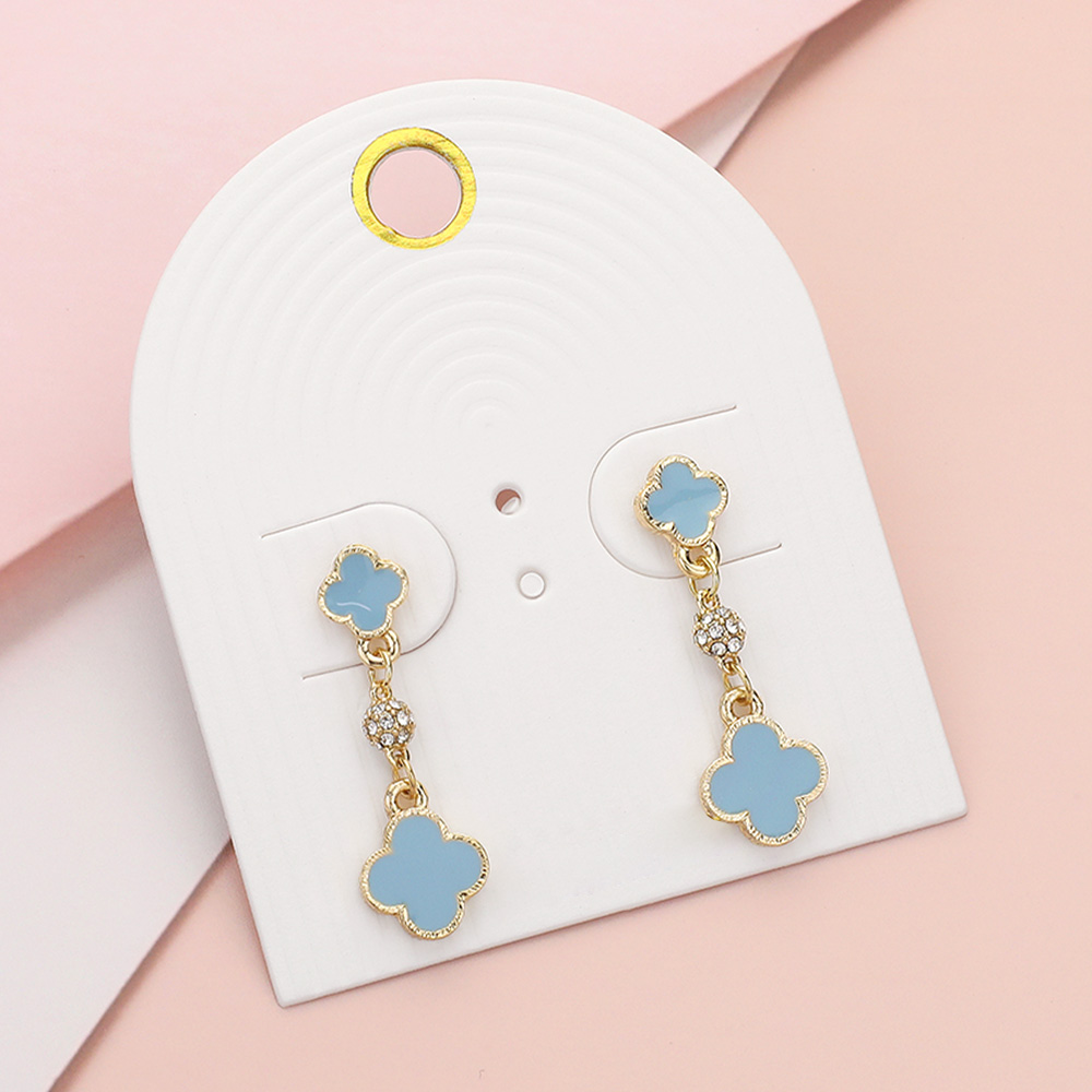 Enamel Quatrefoil Mini Shamballa Ball Link Dropdown Dangle Earrings