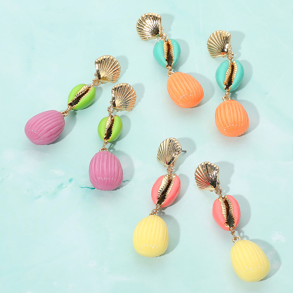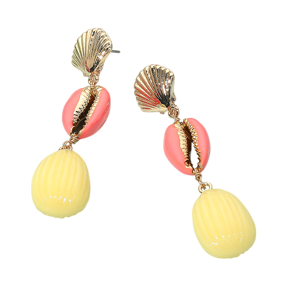 • Bring seaside charm to your look with these shell drop earrings, designed with a playful blend of textures and shapes. Perfect for vacations, summer outfits, or adding a beach-inspired statement to everyday style.