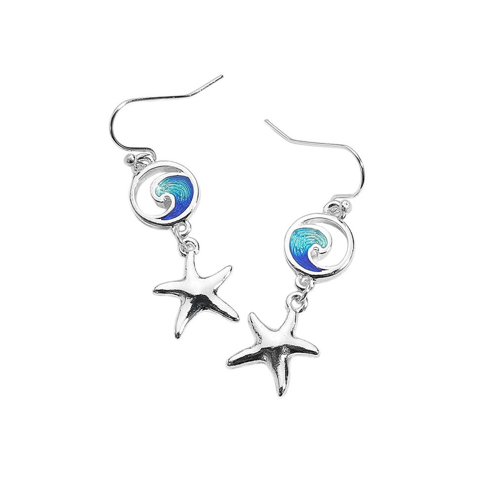 Enamel Wave Metal Starfish Link Dangle Earrings