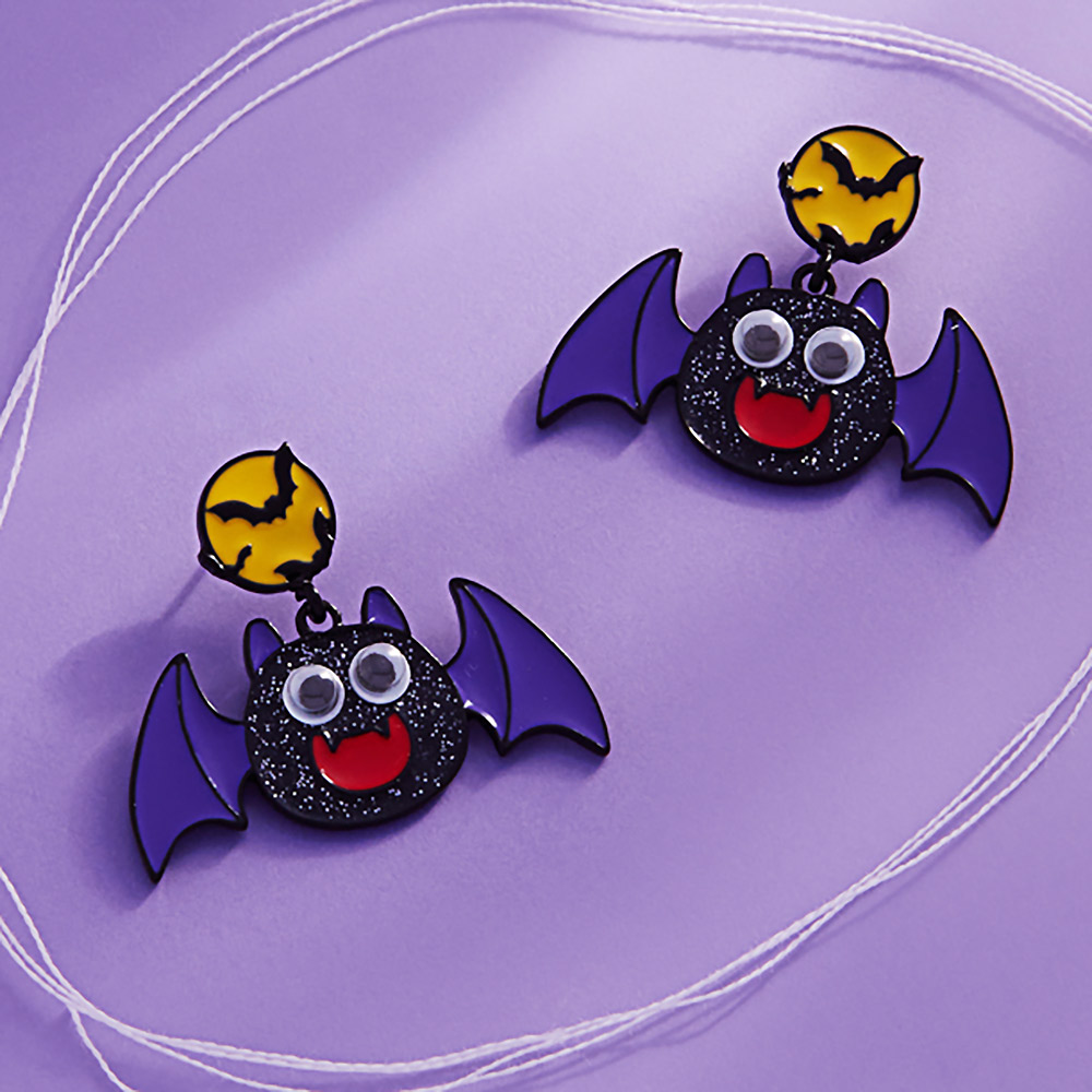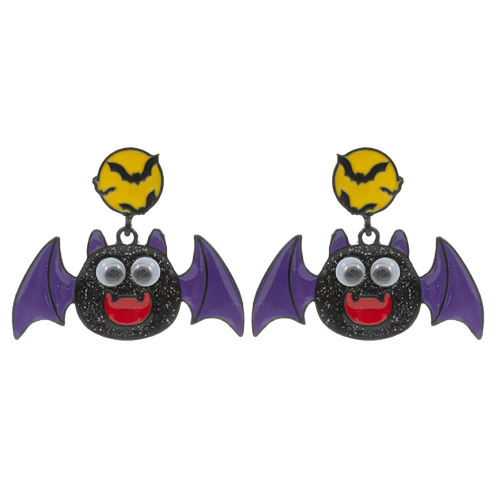 Eye Pointed Enamel Halloween Bat Dangle Earrings