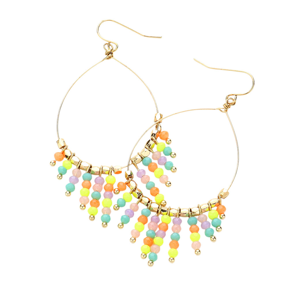 Faceted Bead Fringe Open Wire Teardrop Dangle Earrings