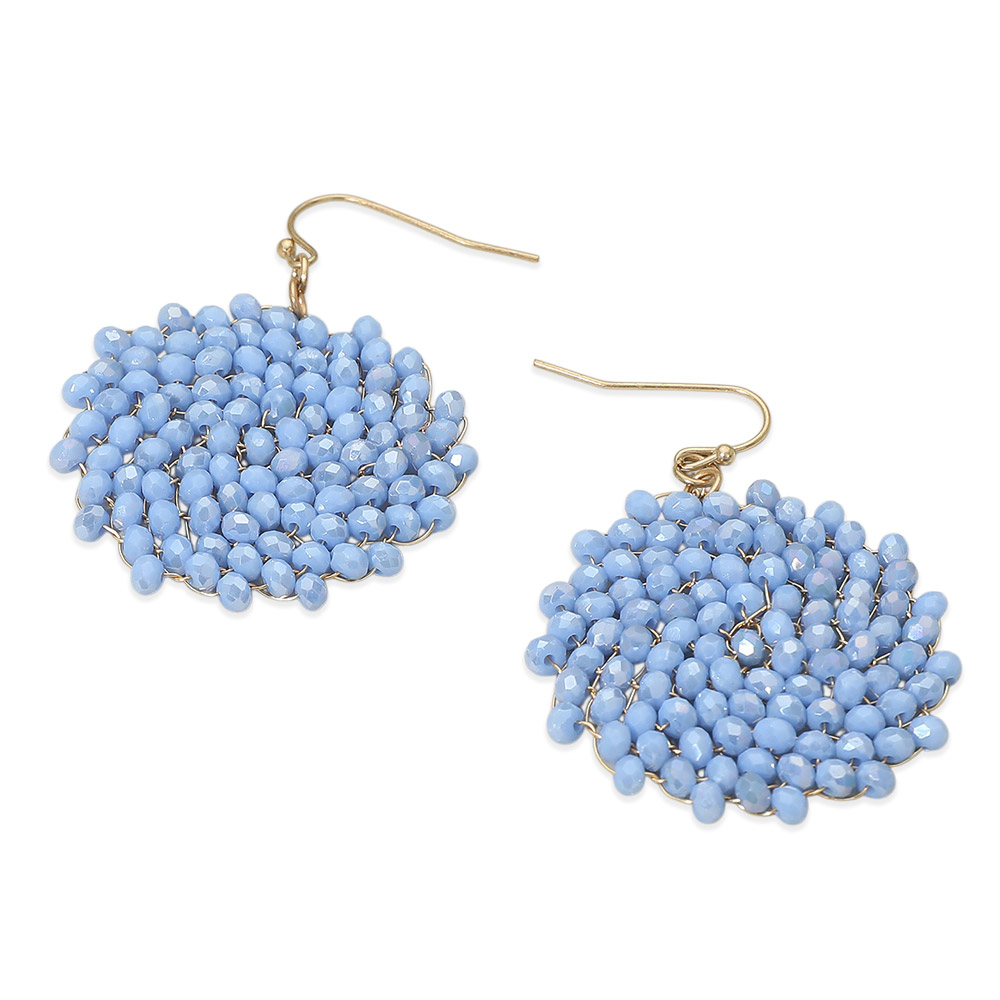 • Statement drop earrings featuring a handcrafted disc silhouette formed with clustered bead detailing. Designed to add movement and texture, these earrings offer a lightweight feel and eye-catching dimension, making them ideal for everyday styling, special occasions, and trend-forward accessory collections.