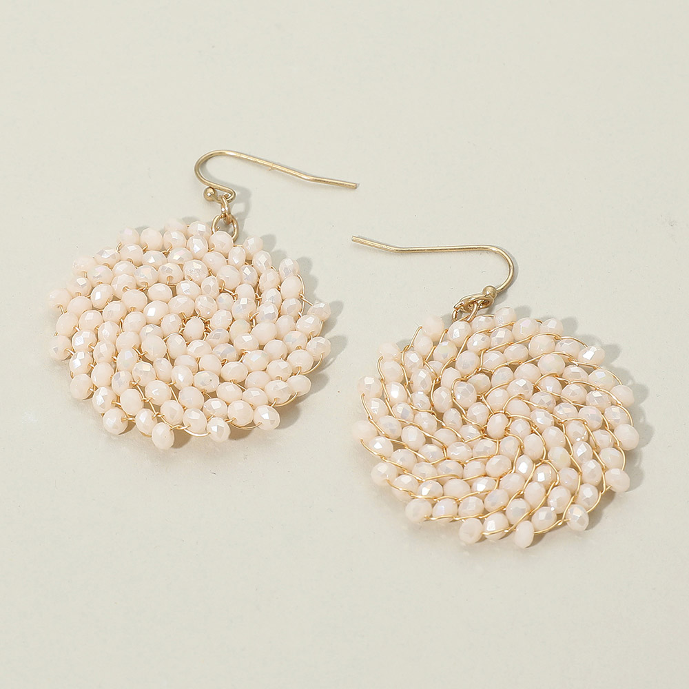 • Statement drop earrings featuring a handcrafted disc silhouette formed with clustered bead detailing. Designed to add movement and texture, these earrings offer a lightweight feel and eye-catching dimension, making them ideal for everyday styling, special occasions, and trend-forward accessory collections.