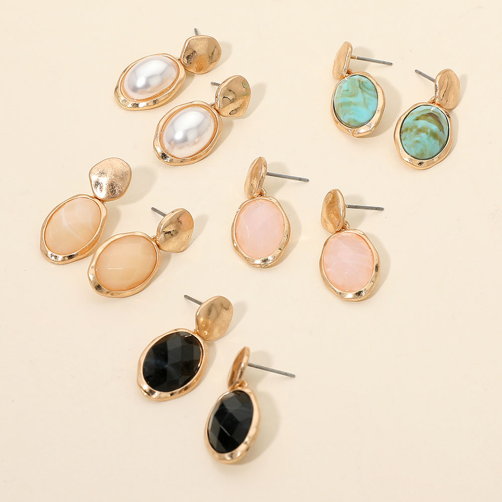 • These faceted oval drop earrings feature a striking gemstone-inspired center set within an organic, sculpted metallic frame. Versatile and lightweight, they add polished sophistication to everyday outfits or evening looks, making them a standout accessory for modern, elegant style.