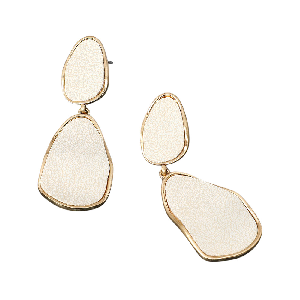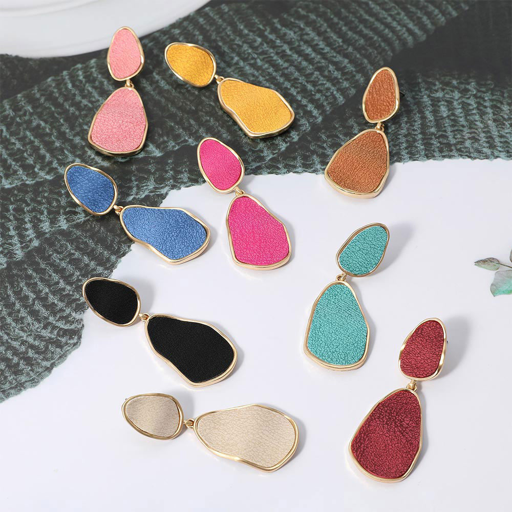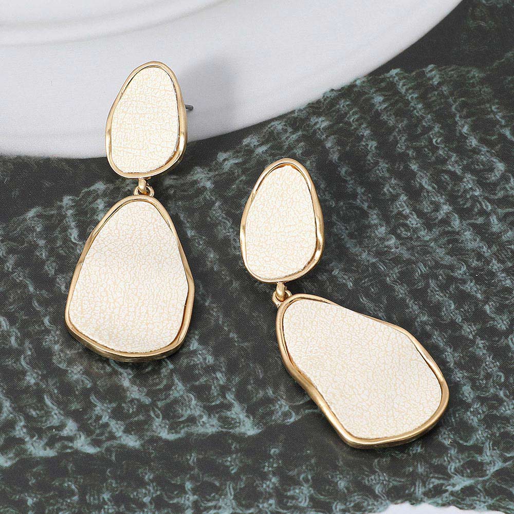 Faux Leather Metal Abstract Plate Link Dangle Earrings