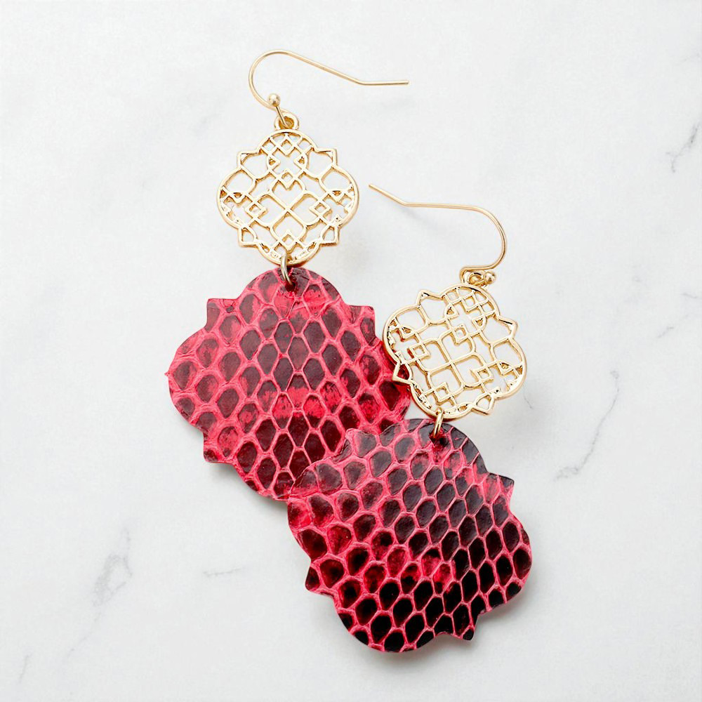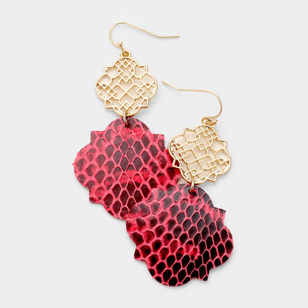 Square Stone Accented Metal Teardrop Snowflake Filigree Dangle Earrings