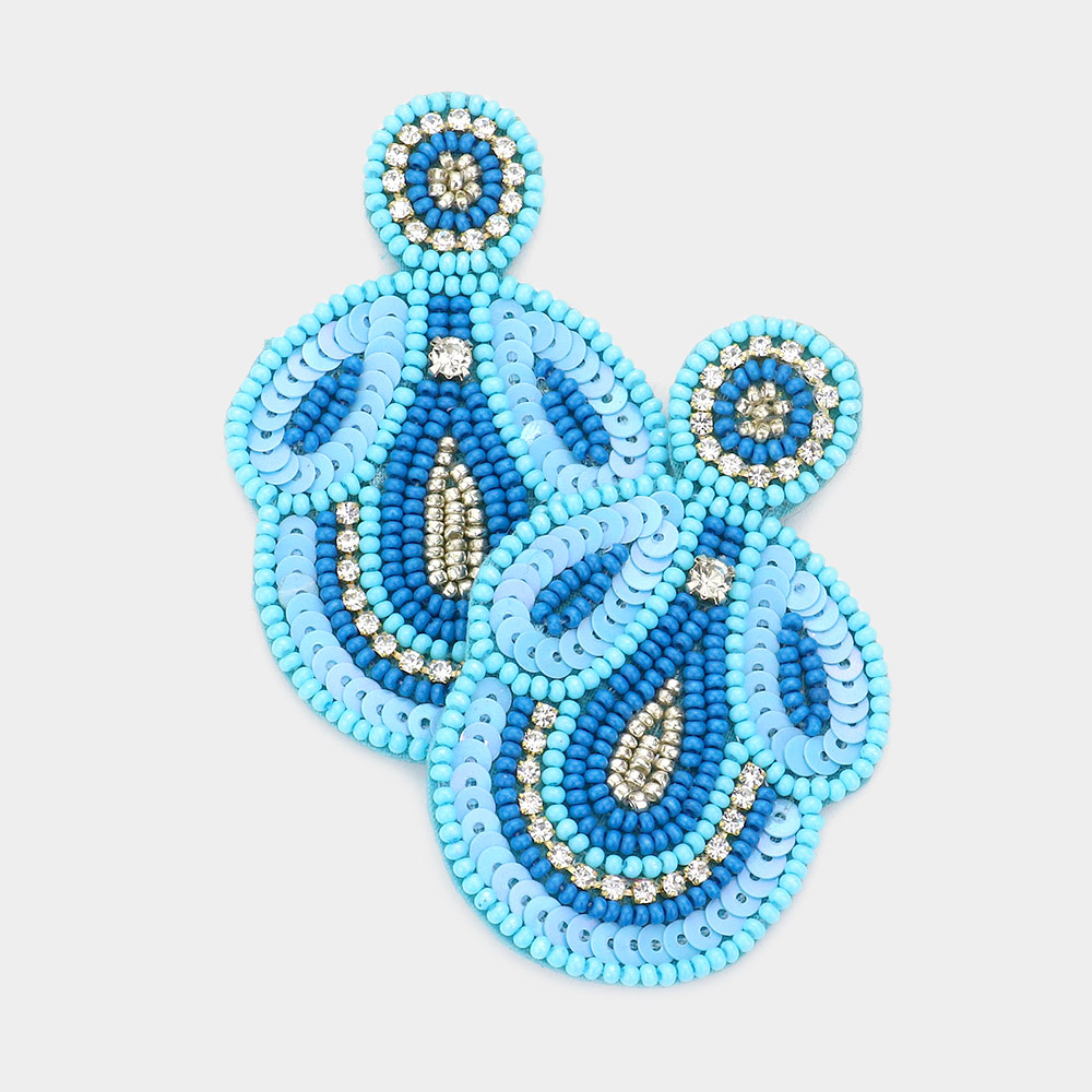 -S- Initial Monogram Turquoise Charm Faceted Beaded Stretch Bracelet