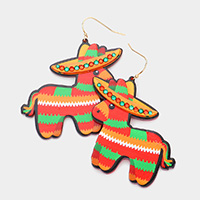 Felt Back Seed Beaded Cowboy Hat Accented Dangle Earrings