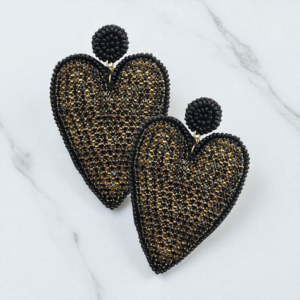 Felt Back Rhinestone Seed Beaded Heart Dangle Earrings