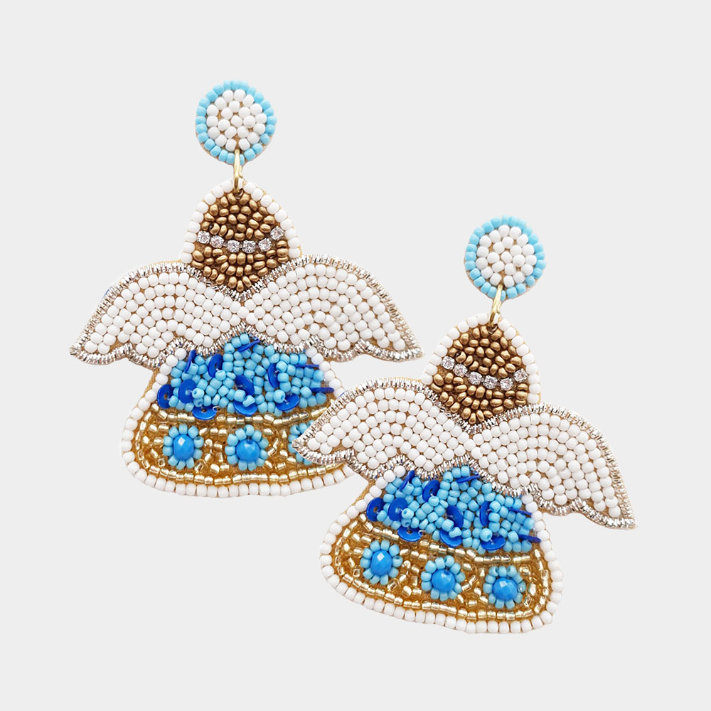 Felt Back Seed Beaded Angel Dangle Earrings
