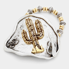 Western Cactus Pearl Heart Metal Flower Key Crescent Charm Station Necklace