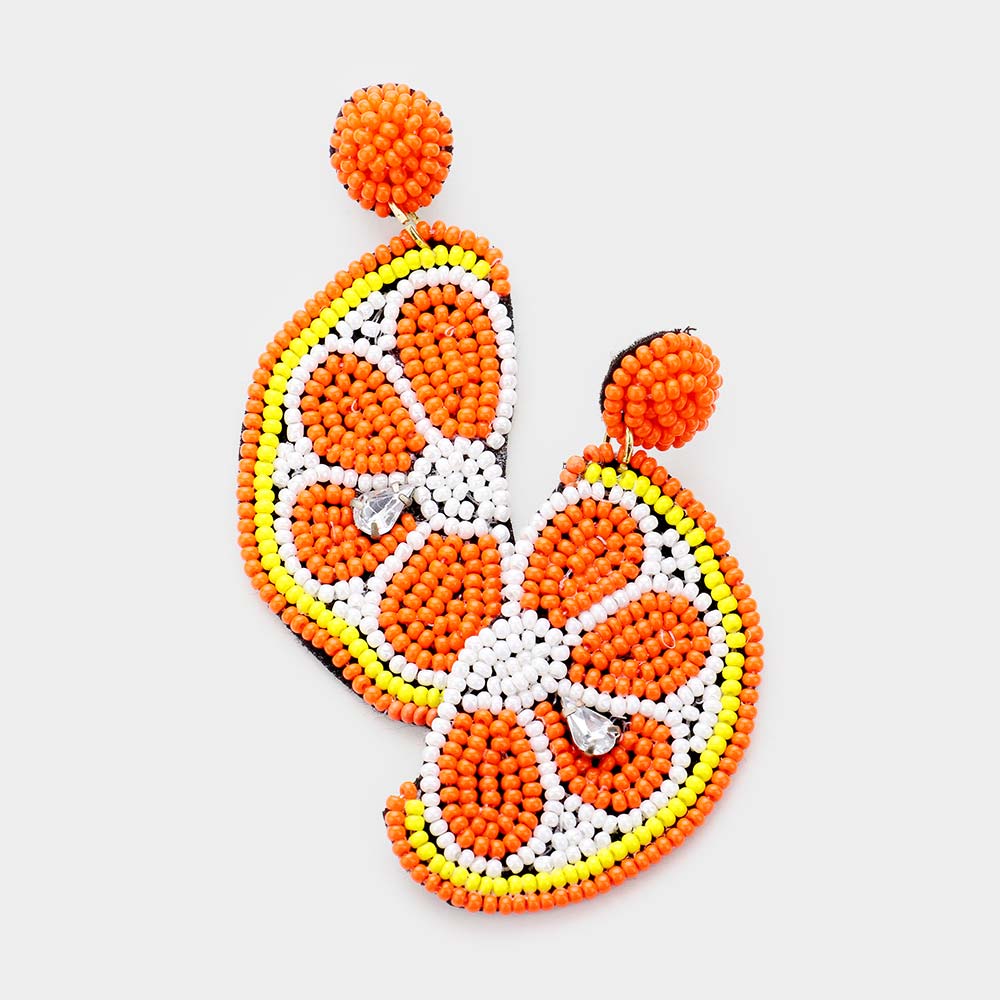 Felt Back Seed Beaded Lemon Dangle Earrings
