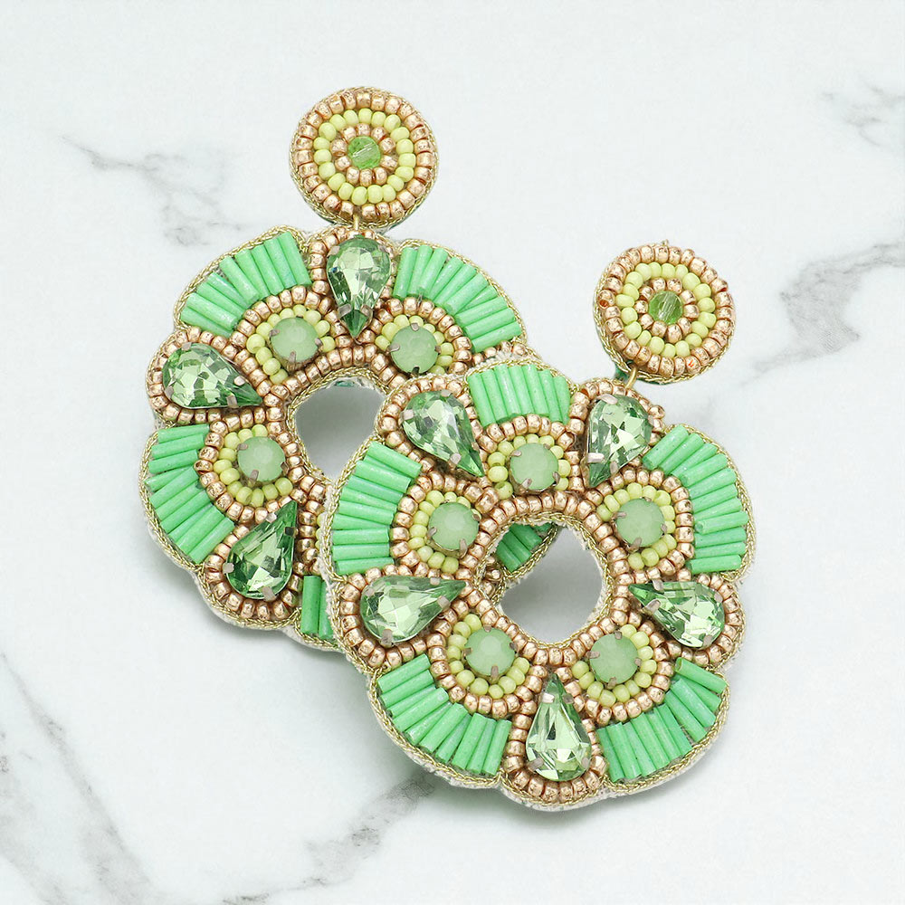 Felt Back Stone Embellished Beaded Open Circle Dangle Earrings