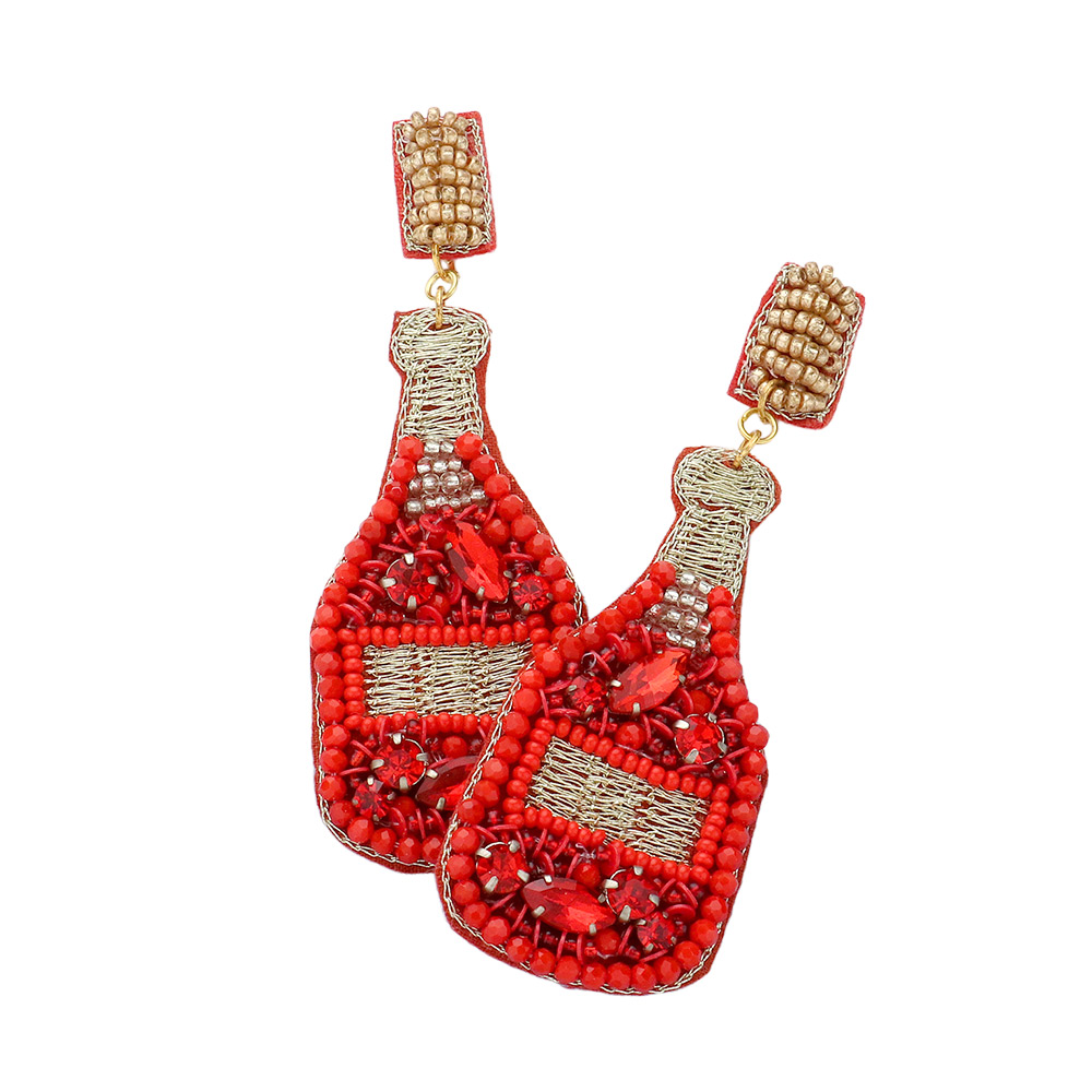 Felt Back Stone Embellished Champagne Dangle Earrings