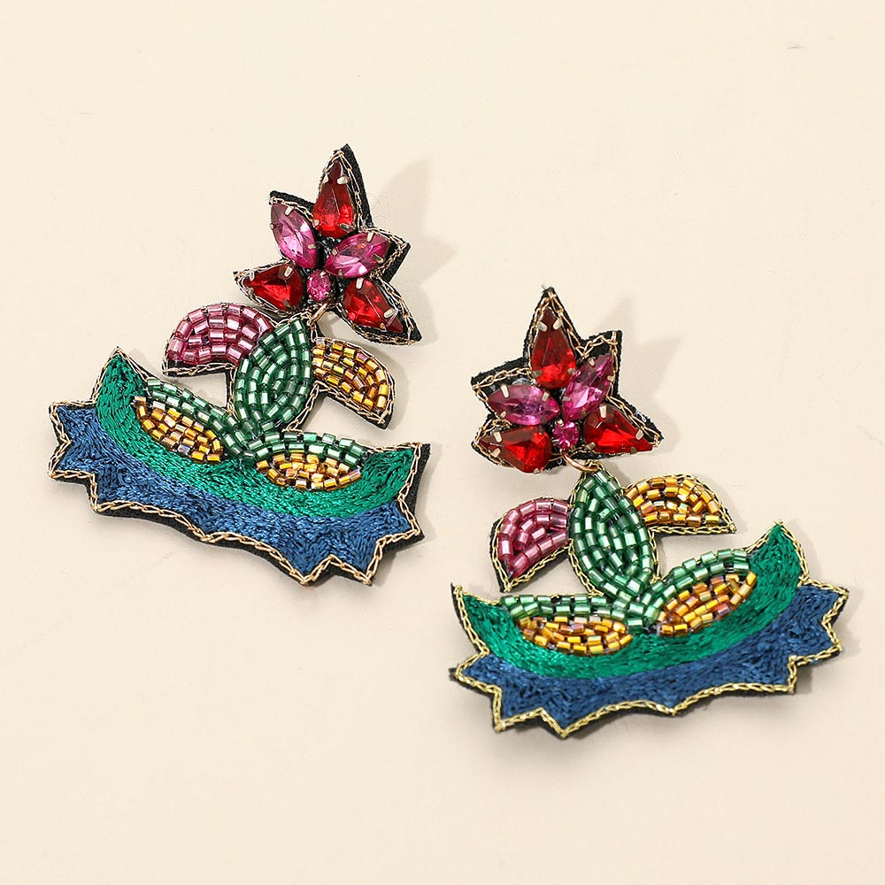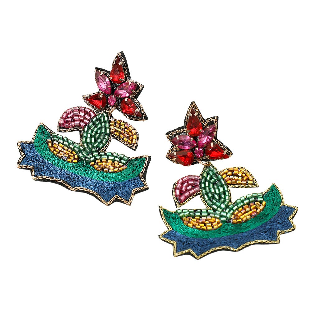 Felt Back Stone Seed Beaded Mardi Gras Dangle Earrings