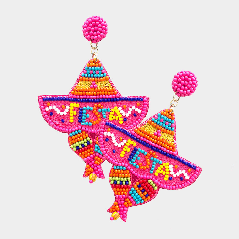 Fiestas Message Felt Back Beaded Hat Dangle Earrings