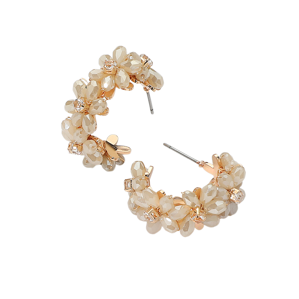 Details • Size : 1.2" X 1.2" X 0.5" • Post Back • Add elegance to your look with these floral beaded hoop earrings, featuring clustered beads in a chic design. Perfect for parties, weddings, or casual wear, these earrings make a stylish statement and a versatile accessory that pairs beautifully with any outfit. A must-have for jewelry lovers. • Lead and Nickel Compliant