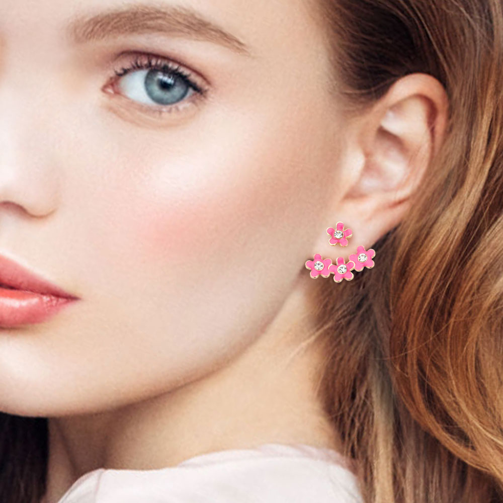 Thread Wrapped Rhinestone Flower Embellished Hoop Earrings