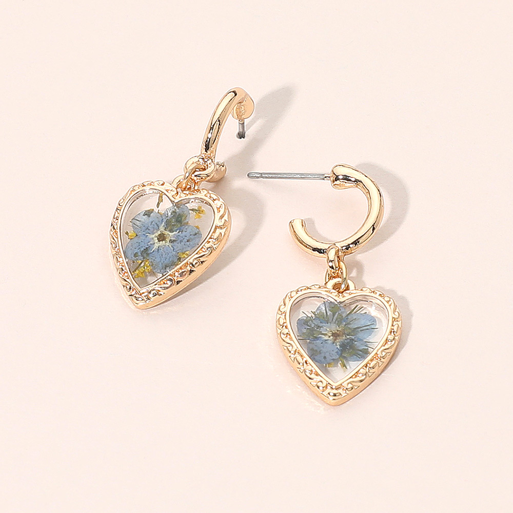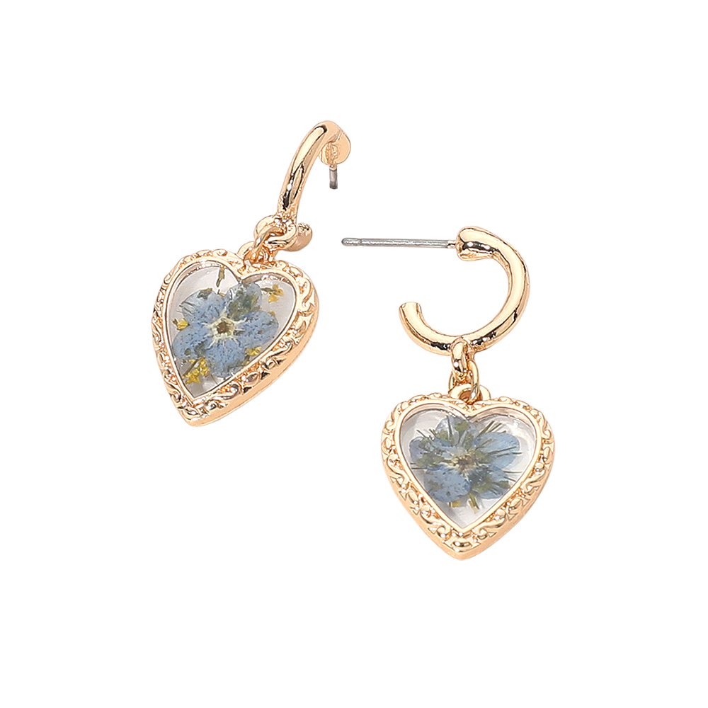 • Charming heart-shaped drop earrings designed to showcase a delicate, botanical-inspired centerpiece within a sleek, modern silhouette. Lightweight and easy to style, they add a romantic accent to everyday outfits while transitioning effortlessly into polished looks for evenings or special occasions.
