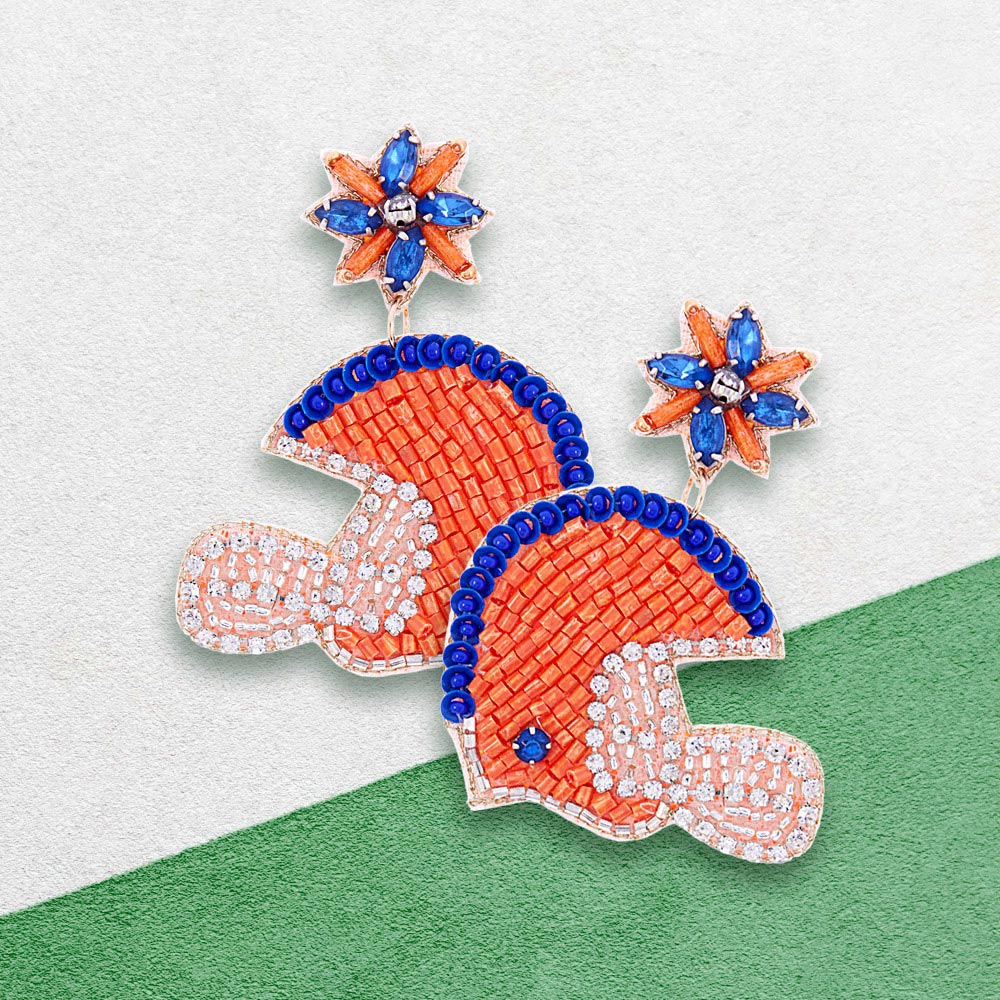 Game Day Felt Back Stone Beaded Football Helmet Dangle Earrings