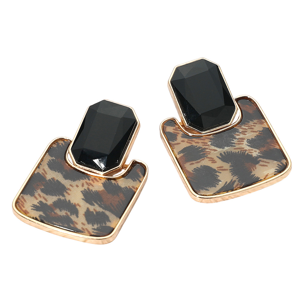 Oversized Leopard Bling Studded Square Door Knocker Earrings