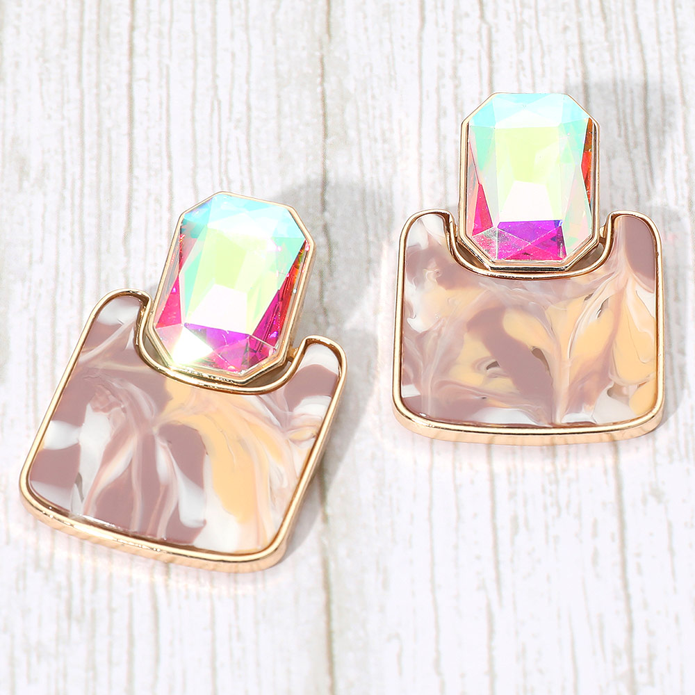 Geometric Stone Accent Printed Resin Plate Drop Earrings Geometric Stone Accent Printed Resin Plate Drop Earrings