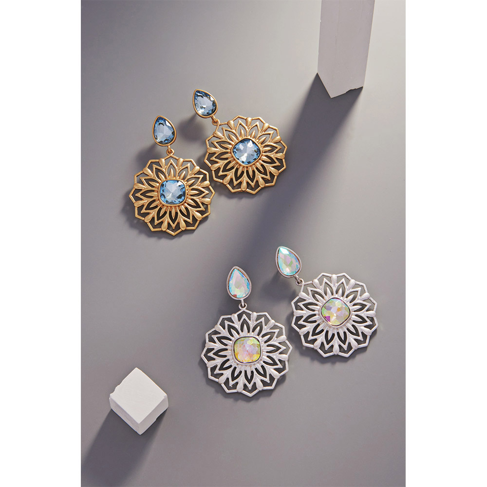 Glass Crystal Teardrop Floral Stretch Evening Bracelet