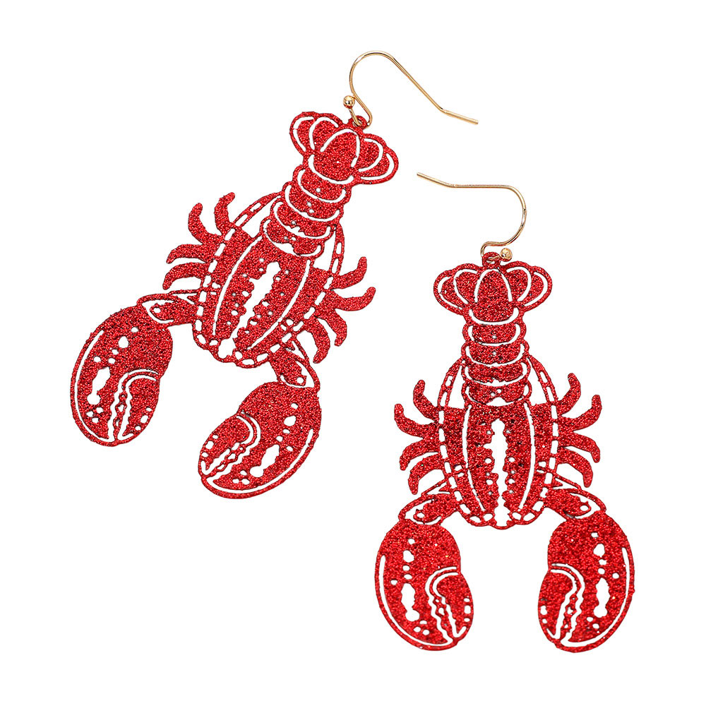 Glitter Cutout Mardi Gras Lobster Charm Drop Earrings