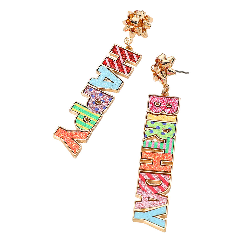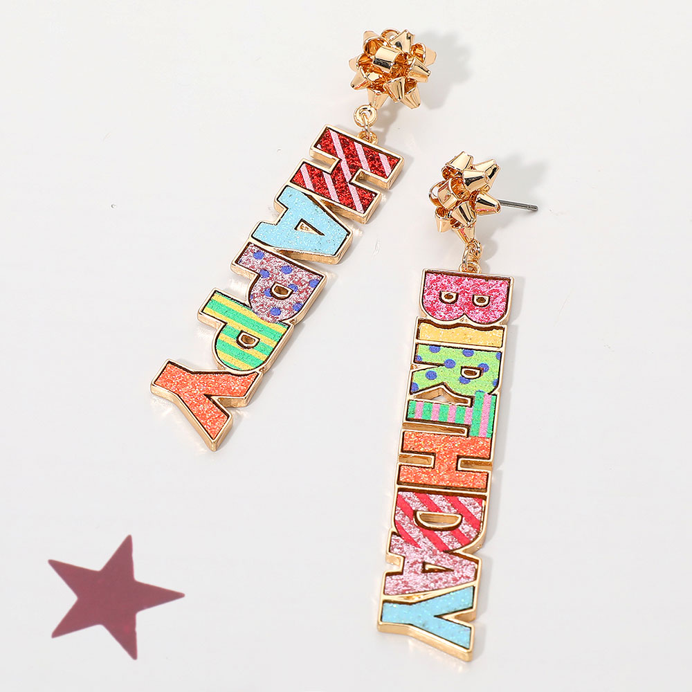 Glitter HAPPY BIRTHDAY Letter Drop Earrings