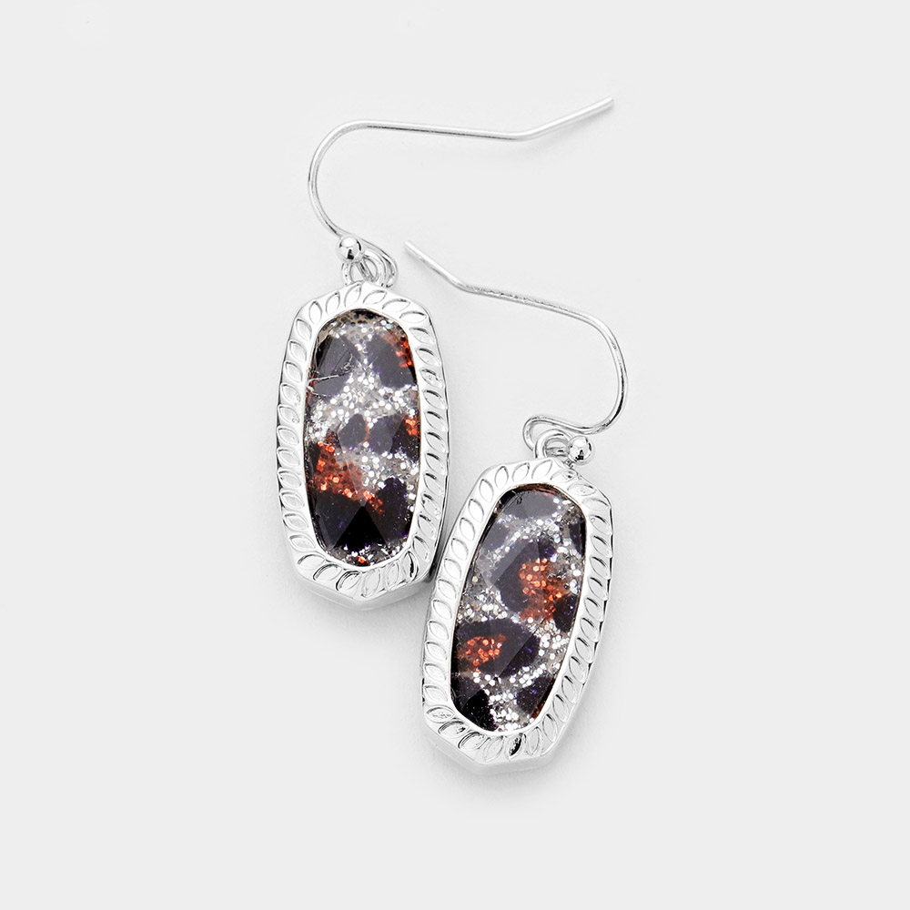 Glitter Leopard Hexagon Stone Dangle Earrings