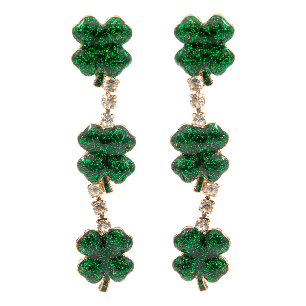 Glitter Triple Shamrock Drop Earrings Glitter Triple Shamrock Drop Earrings