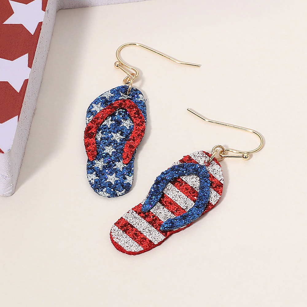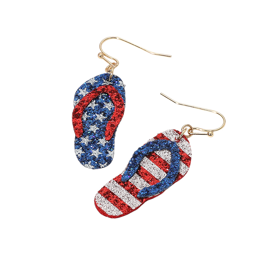 Glittered American USA Flag Flip Flop Dangle Earrings