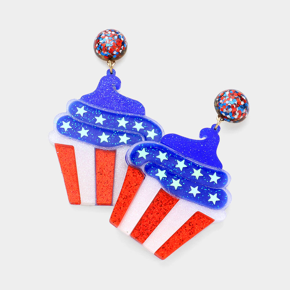 Glittered Resin American USA Flag Cupcake Dangle Earrings