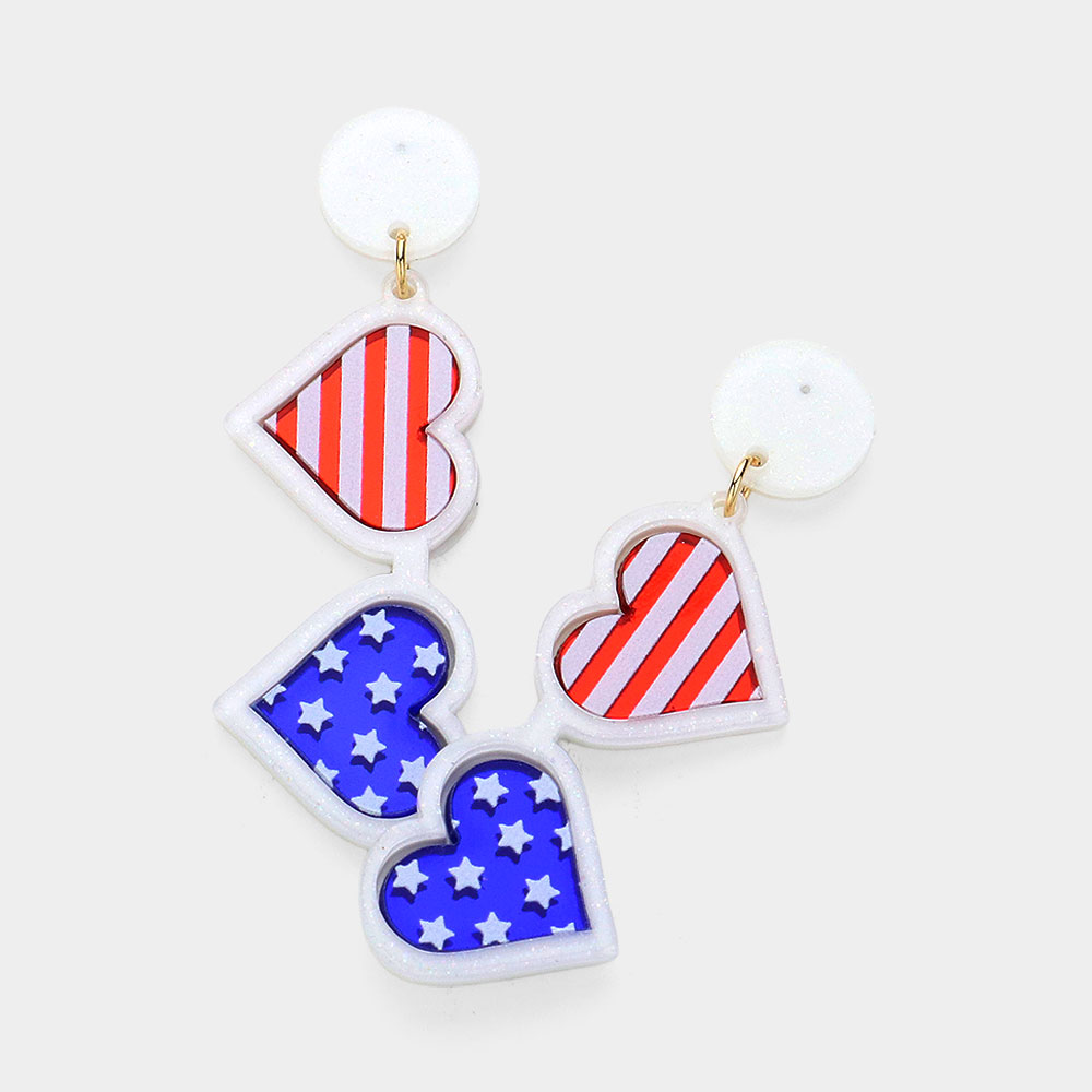 Glittered Resin American USA Flag Heart Sunglasses Dangle Earrings
