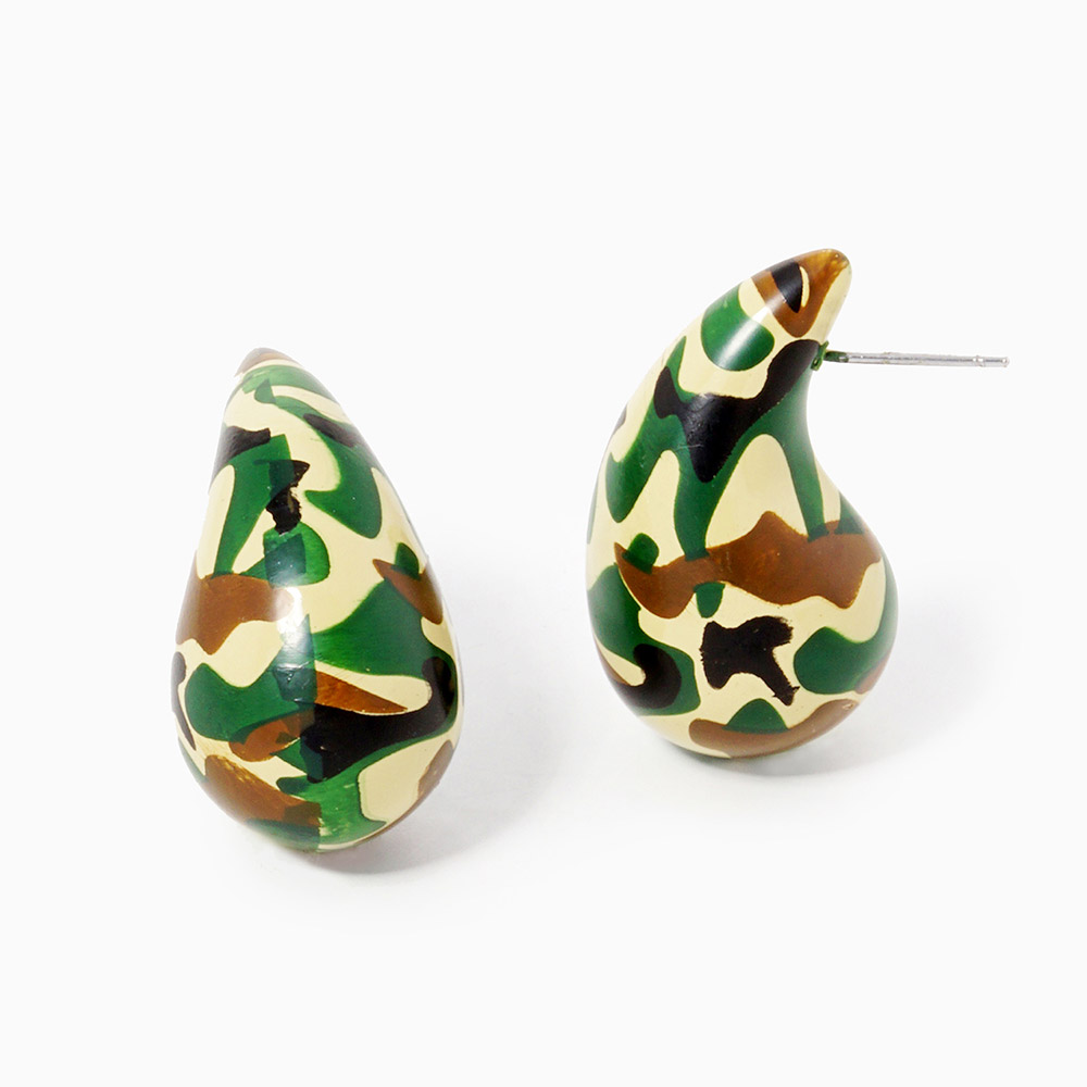 Gold Dipped Camouflage Wood Teardrop Earrings