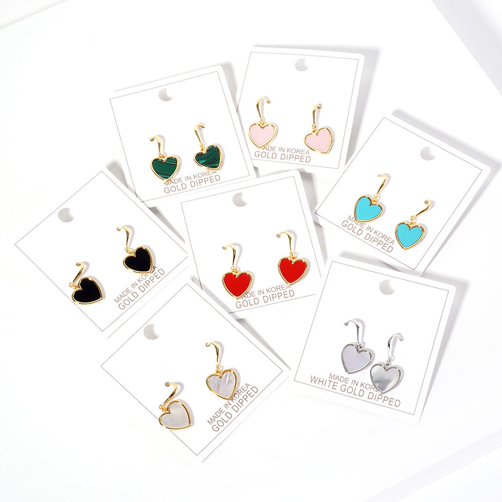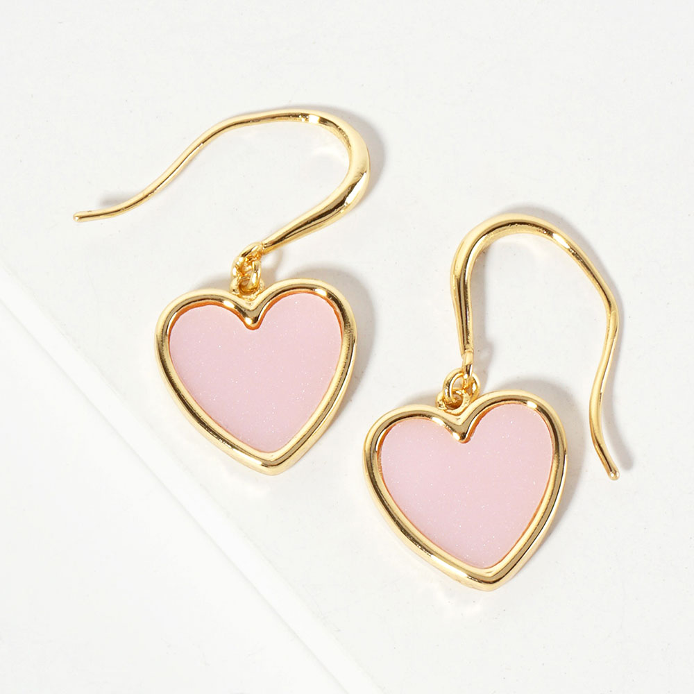 • Elegant heart dangle earrings featuring a smooth heart-shaped drop with a enamel style finish. Lightweight hook design adds effortless charm for daily wear, special occasions, or gifting. A timeless accessory with a soft, romantic touch.