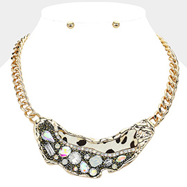 Happy New Year Message Printed Stone Trimmed Metal Teardrop Dangle Earrings